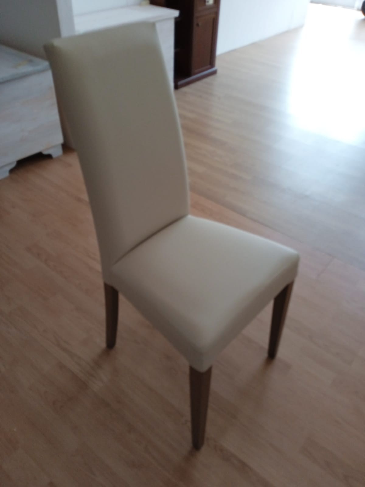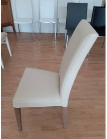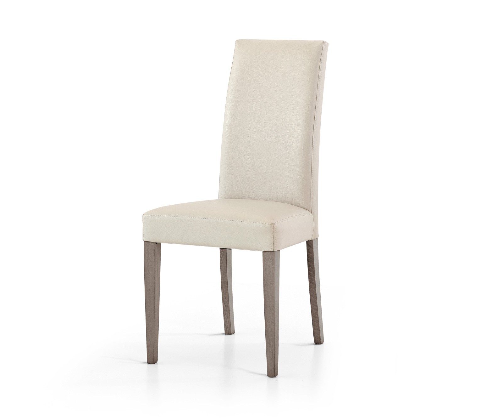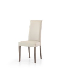 Sedia moderna e confortevole art.678, dal design moderno è imbottita in ecopelle con lavorazione effetto SIMILPELLE e gambe legno in tinta.