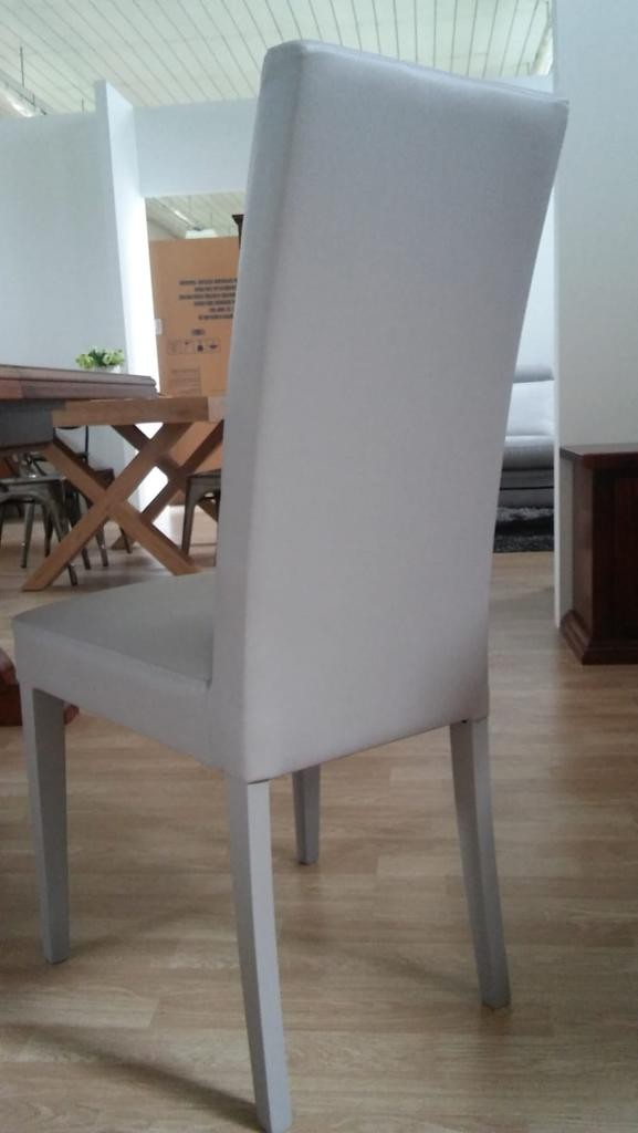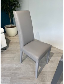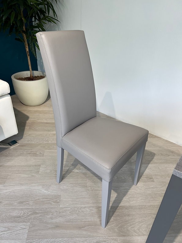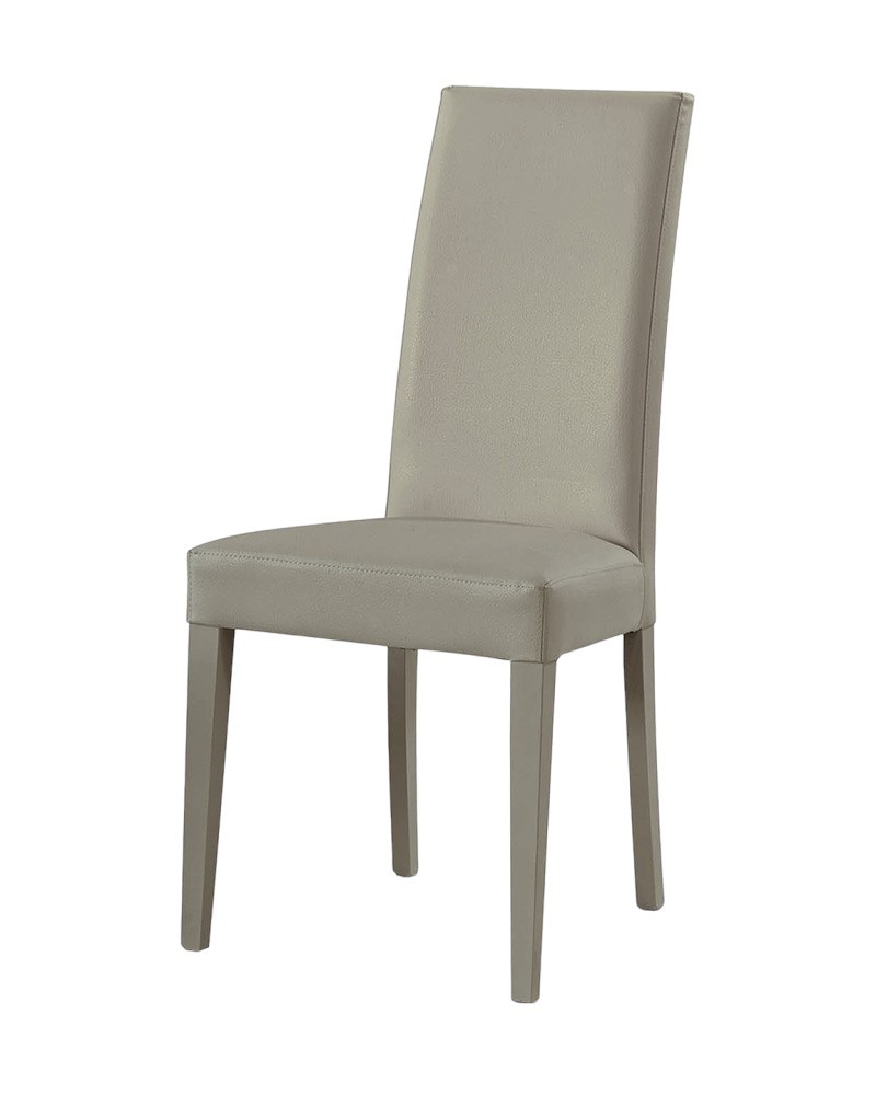 Sedia moderna e confortevole dal design moderno è imbottita in ecopelle con lavorazione effetto SIMILPELLE e gambe legno in tinta.