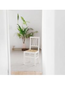 Queste sedie in paglia rivisitate in chiave shabby chic rappresentano un'icona senza tempo del design rustico e country. Con un fascino e un'estetica d'altri tempi, riportano in auge lo stile delle vecchie case di campagna, arricchito qui con un tocco di modernità, grazia all'elegante e versatile finitura laccata bianca opaca.
