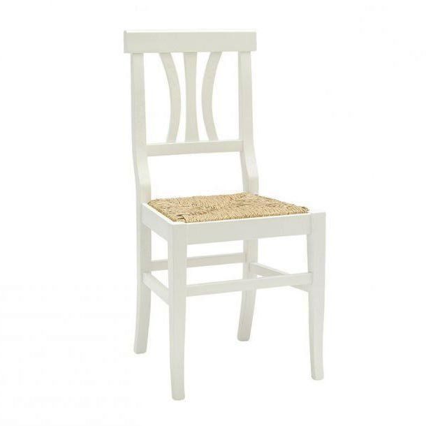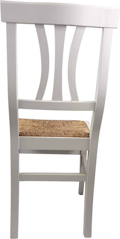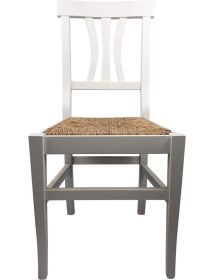 Set 2 sedie in paglia, struttura in legno bianco shabby chic