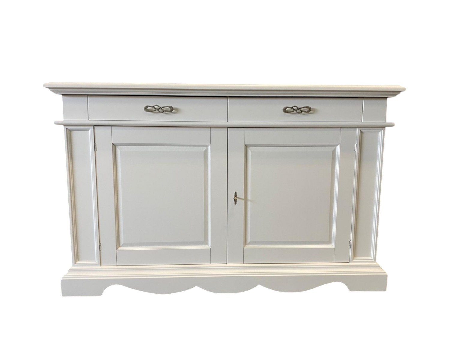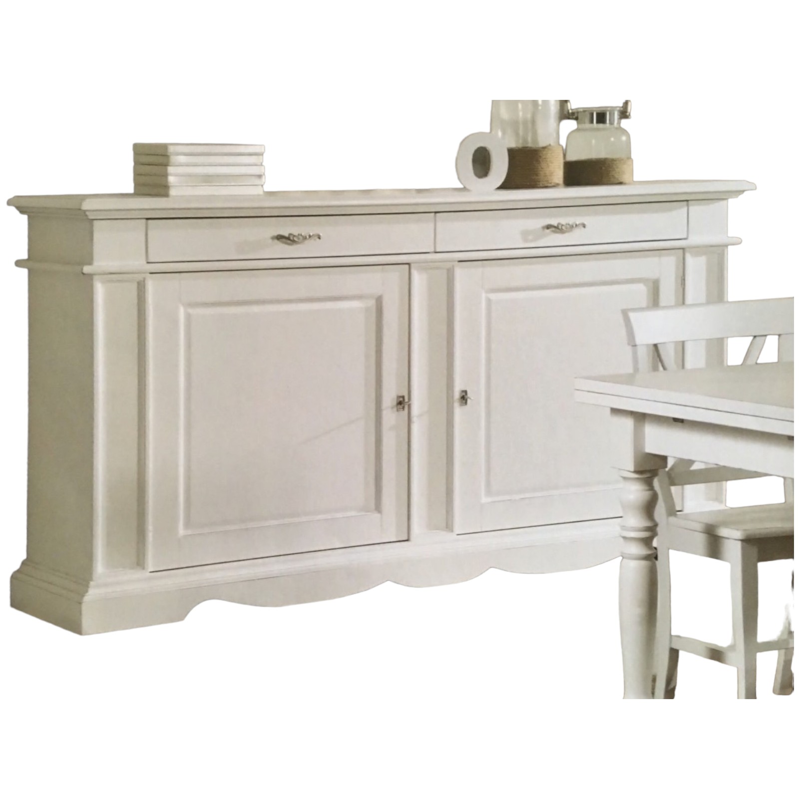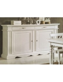 MADIA CREDENZA CLASSICA IN LEGNO 2 PORTE SHABBY BIANCO 210X55X115