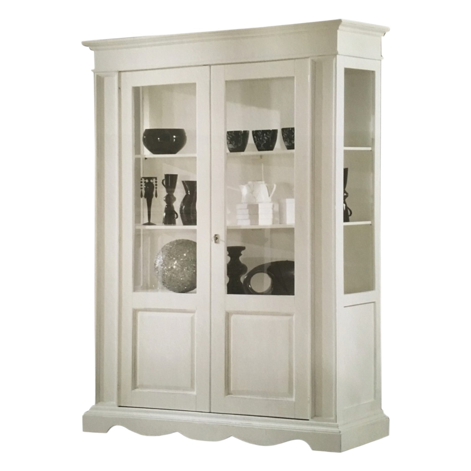 MOBILI 2G - VETRINA CLASSICA IN LEGNO 2 PORTE SHABBY BIANCO 155X50X210