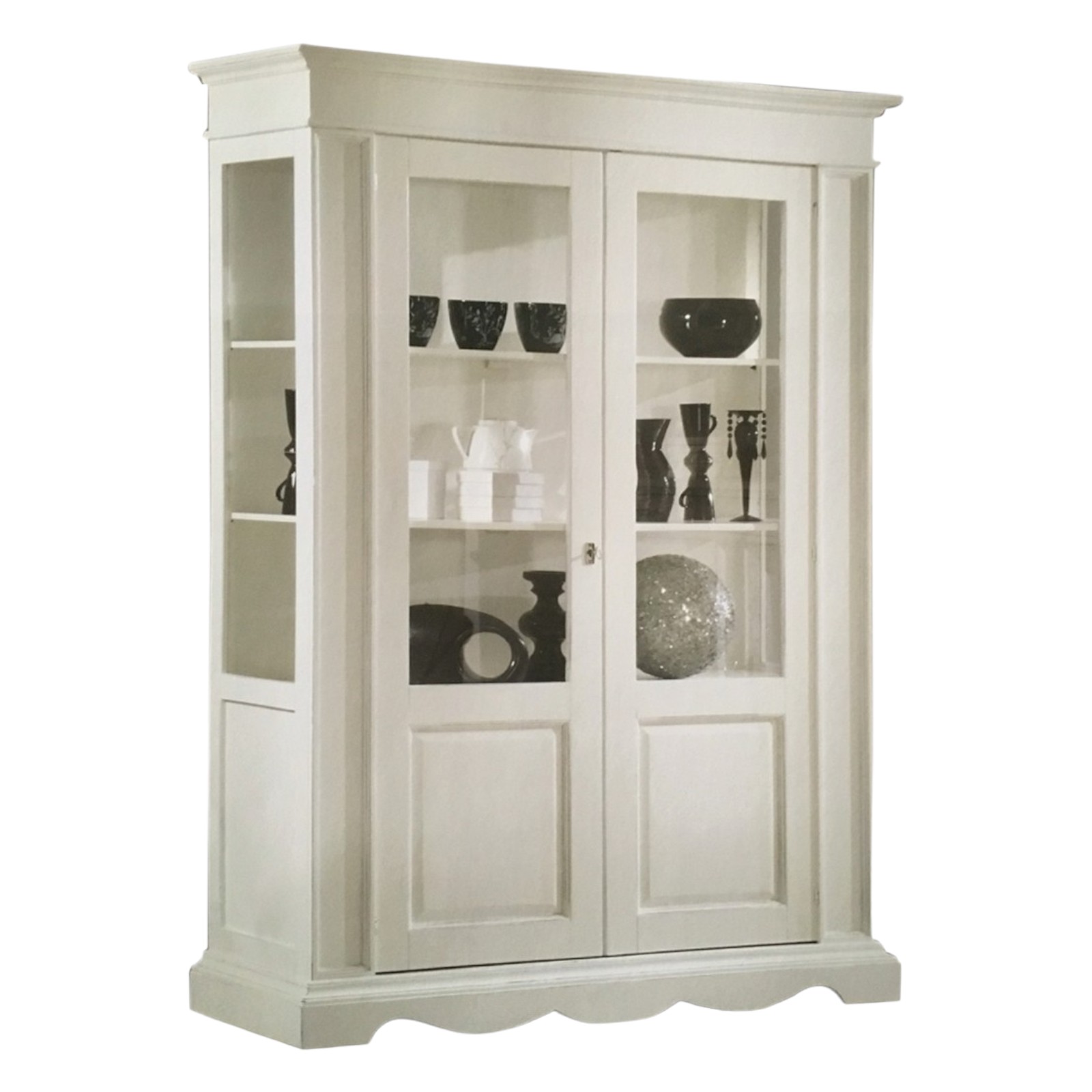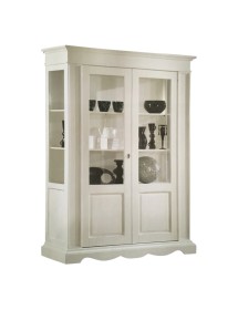 VETRINA CLASSICA IN LEGNO 2 PORTE SHABBY BIANCO 155X50X210