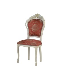 Sedia classica con intagli a forma di foglia , dalle linee raffinate ma allo stesso tempo grazie alla sua solida struttura in legno e tessuto assicura comodità e funzionalità. Ideale da posizionare nel salotto o come poltrona d'appoggio di indumenti per la zona notte.