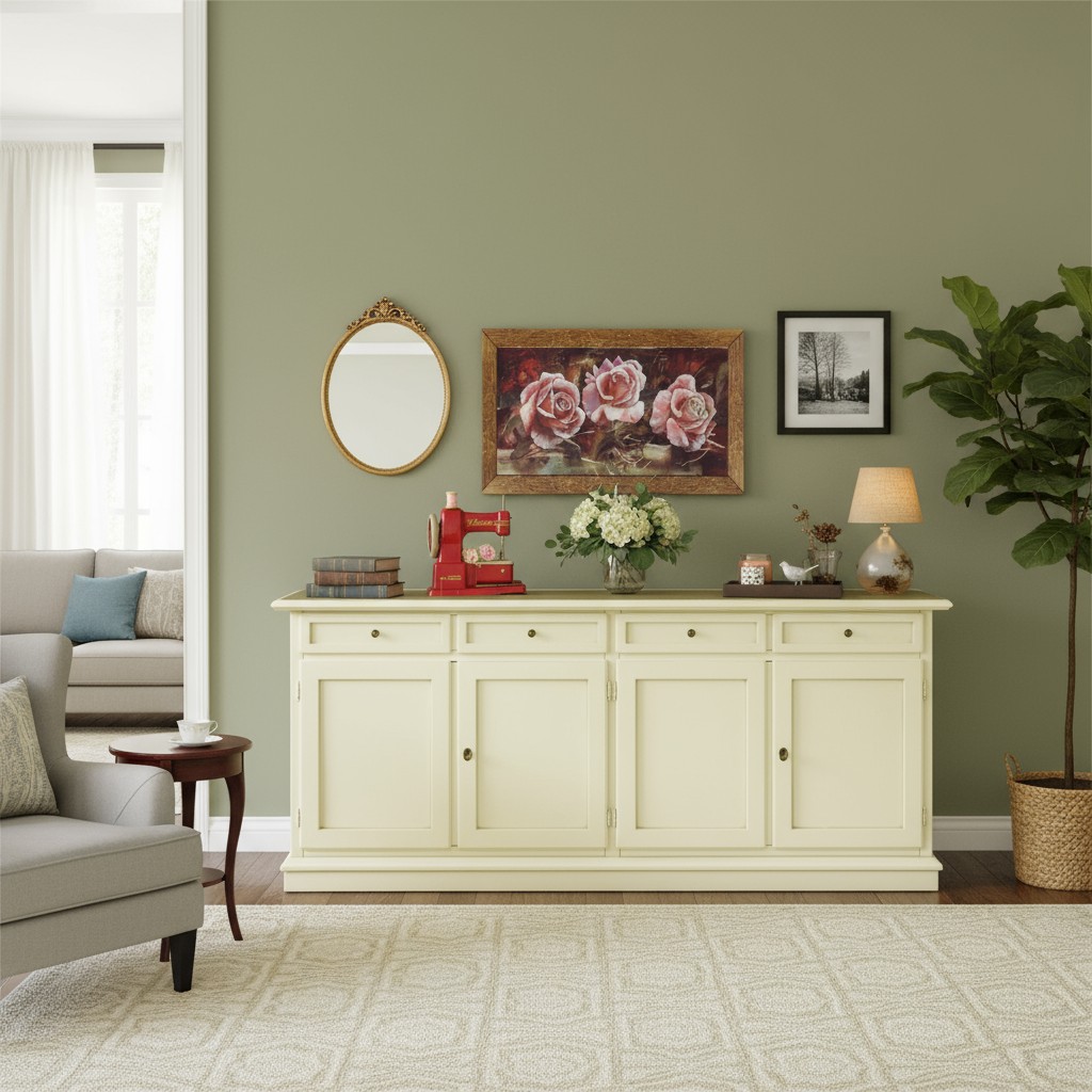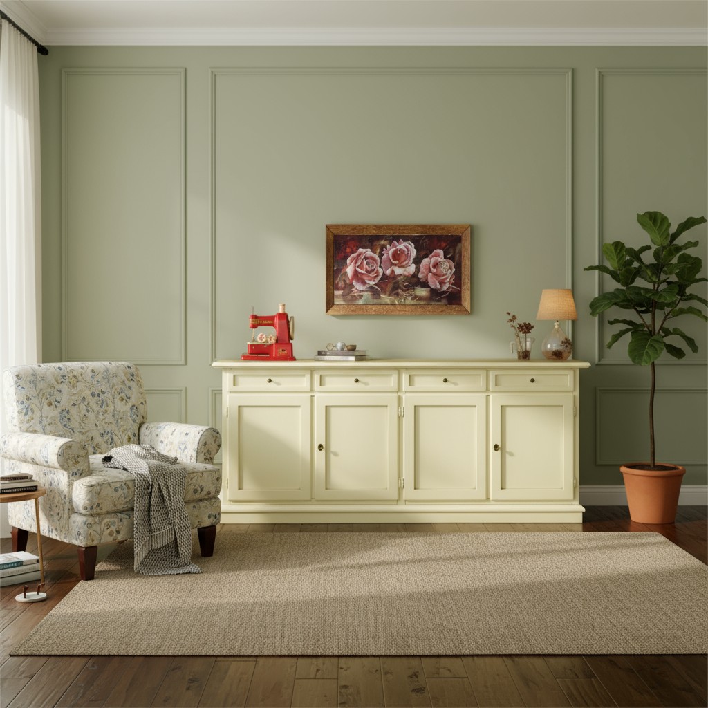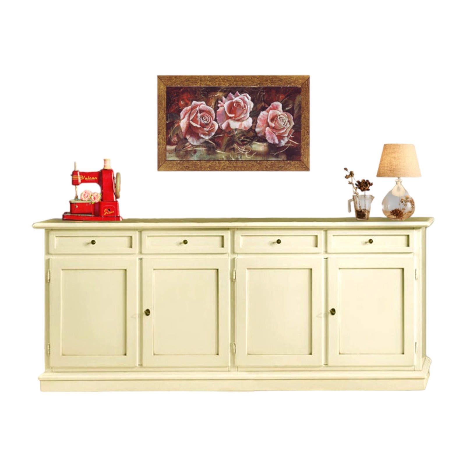 MADIA CREDENZA SHABBY CHIC IN LEGNO 4 PORTE AVORIO 205x42x85