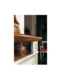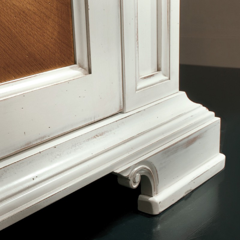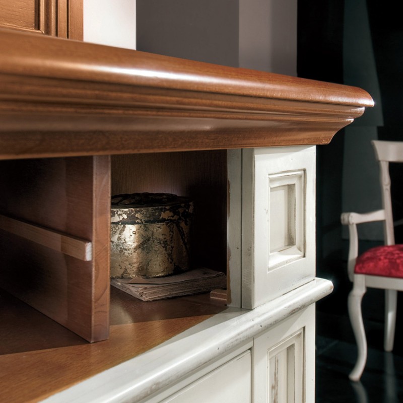 Finitura credenza: struttura laccato bianco consumato con pannelli delle 2 porte noce medio