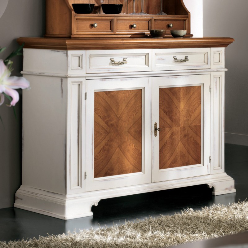 Credenza 2 cassetti 2 porte con intarsi 1 ripiano interno