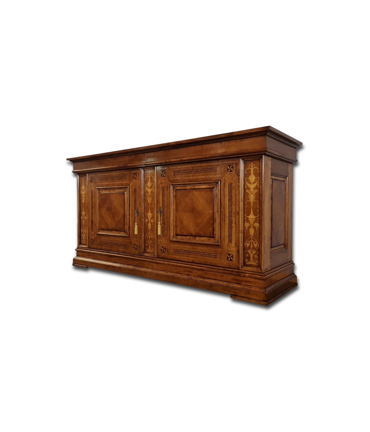 CREDENZA 2 PORTE CLASSICA INTARSIO LEGNO BASSANO 230X68x115