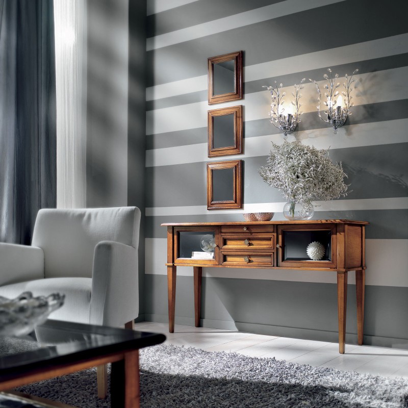 CONSOLLE CLASSICA 3 CASSETTI 2 PORTE LEGNO BASSANO 140X40x80