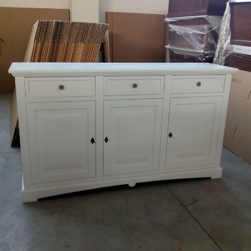 MADIA CREDENZA ARTE POVERA 3 PORTE LEGNO BIANCO 170x46x96