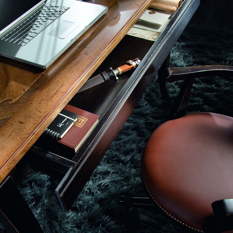 Scrivania costruita in legno massello con gambe a spillo dotata di 1 cassetto e piano con intarsio, offrendoti lo spazio necessario per tenere in ordine i documenti e la cancelleria. Unica nel suo genere raffinata e dalle linee morbide e sinuose, dallo stile classico e intramontabile. Ideale per il tuo luogo lavoro o di studio dove trascorrere il tempo per impegni lavorativi o di studio.