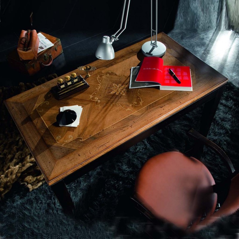 SCRIVANIA 1 CASSETTO INTARSIO LEGNO SHABBY 130X70x78