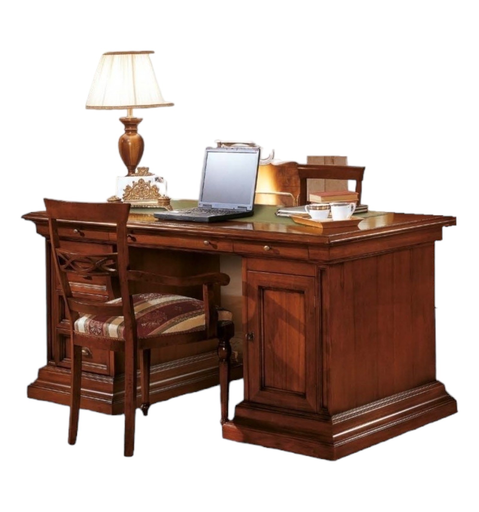 SCRIVANIA STUDIO CLASSICA IN LEGNO TINTA NOCE 180x85x78