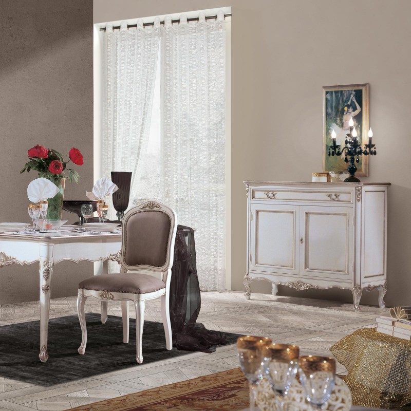 Credenza 2 porte classica legno shabby bianco argento 130X62x107