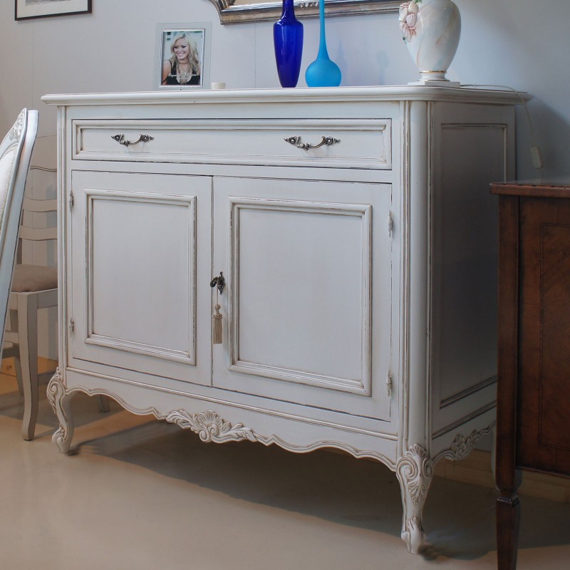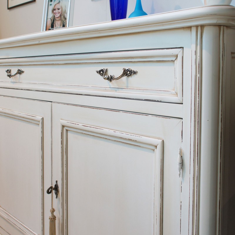 Finitura credenza: struttura laccato bianco invecchiato
