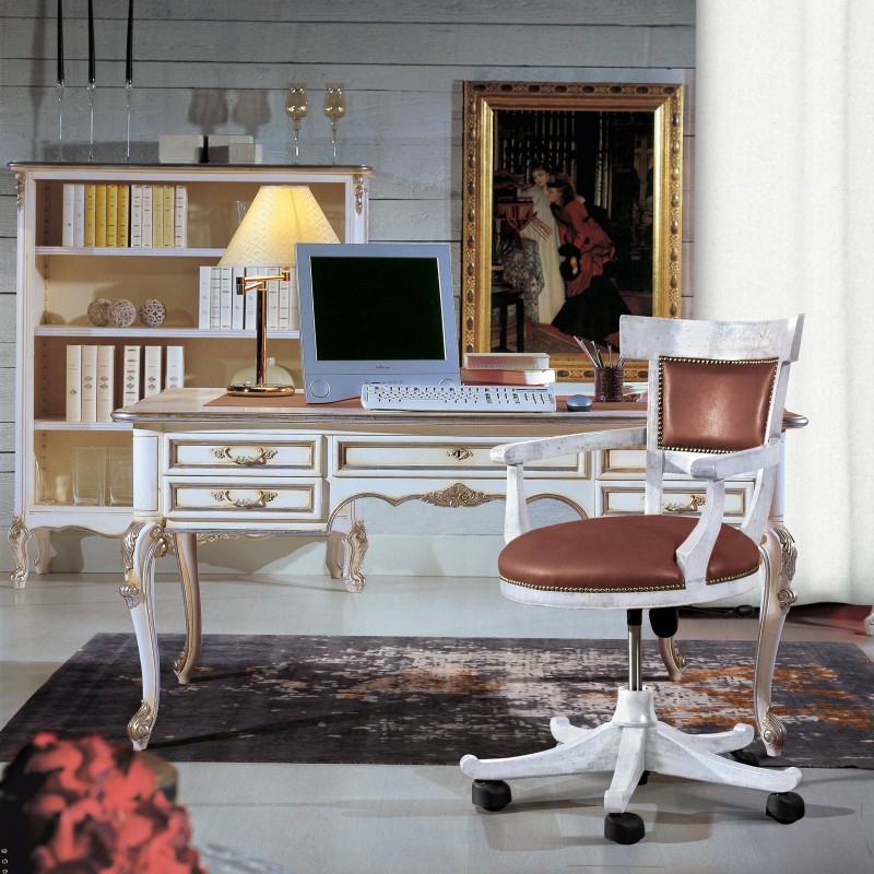 Libreria shabby costruita in legno con angoli smussati e gambe a sciabola. All'interno si trovano 3 ripiani dove appoggiare e esporre oggetti da collezione, libri e soprammobili.Trova facilmente posto in salotto come complemento immancabile per la casa. Unica nel suo genere con la sua particolare laccatura invecchiata creando un bellissimo contrasto con la foglia argento, dando un tocco a un' atmosfera dallo stile romantico.
