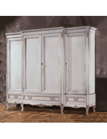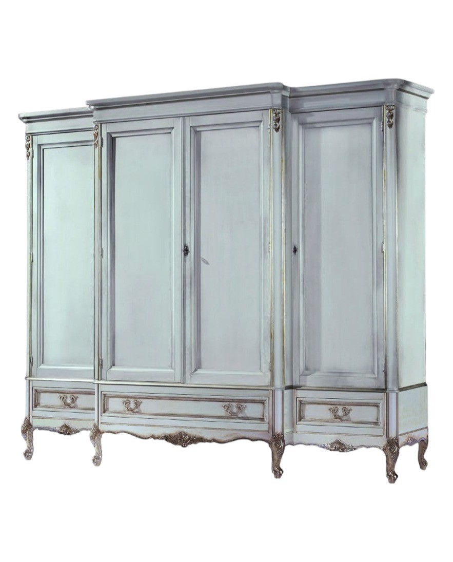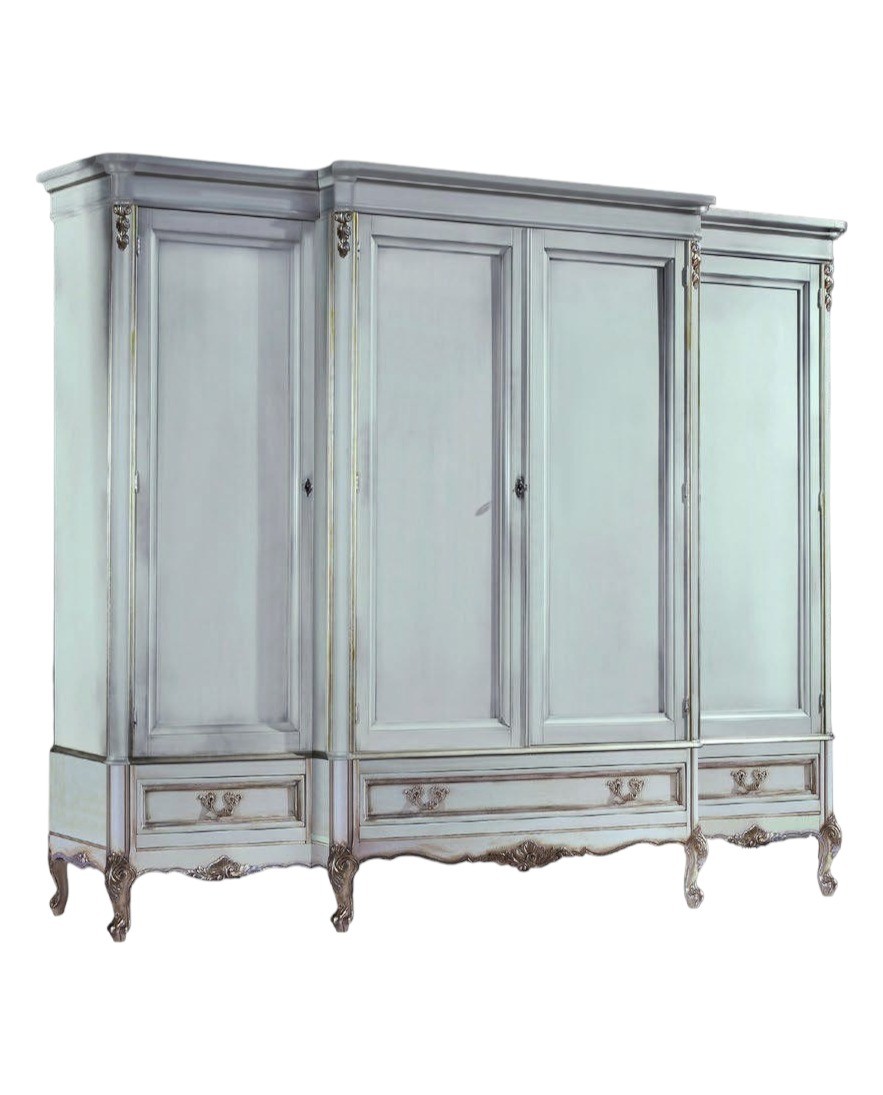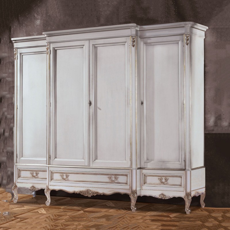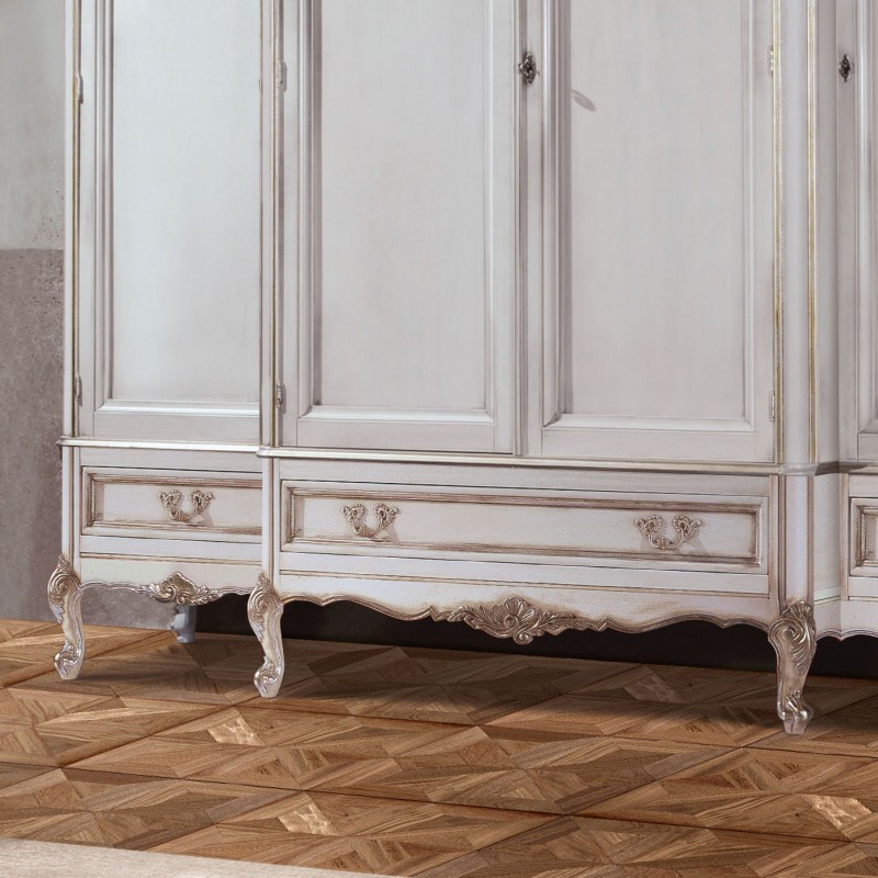 Armadio 4 porte Classico Legno Shabby Bianco Argento 252x60x242