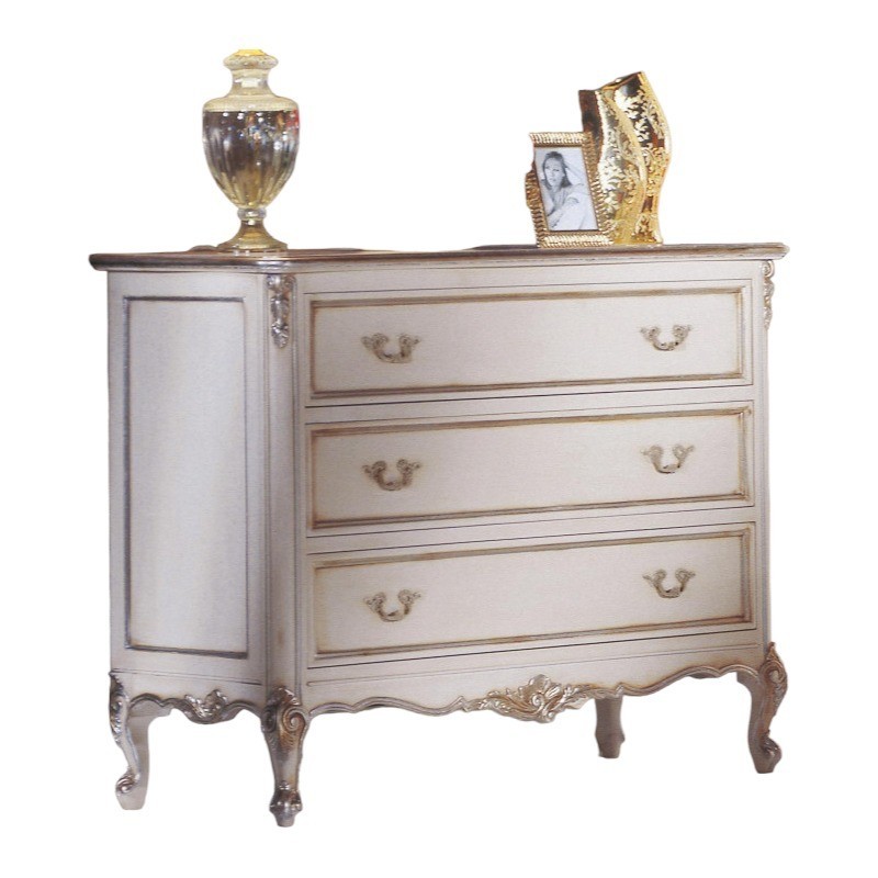 Gruppo Cassettiera e Comodini 3 cassetti Classici Legno Shabby Bianco Argento