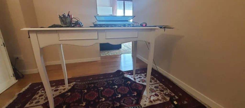 Scrivania costruita in legno con gambe a sciabola dotata di due cassetti e un tiretto laterale estraibile, offrendoti lo spazio necessario per tenere in ordine i documenti e la cancelleria. Unica nel suo genere con il suo stile elegante e raffinato come nei mobili d'altri tempi. Ideale per il tuo luogo lavoro o di studio dove trascorrere il tempo per impegni lavorativi o di studio..