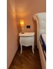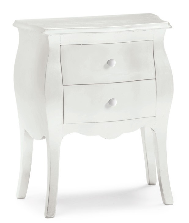 Comodino bombato 2 cassetti laccato interamente color bianco opaco. In legno di pioppo massello con parti in multistrato.