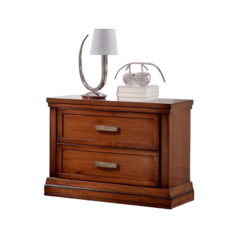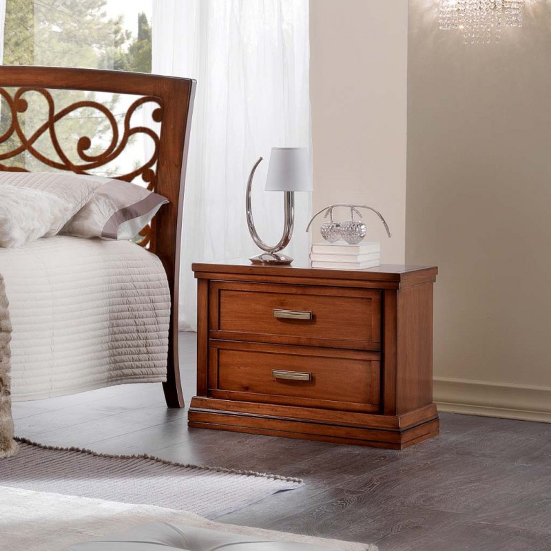 Comodino classico costruito in legno. All'interno dei due cassetti si possono riporre comodamente indumenti e biancheria intima. Trova facilmente posto nella zona notte grazie al suo stile intramontabile caratterizzato da un design classico e raffinato. Complemento d'arredo in grado di rendere ancora più accogliente e caldo l'ambiente in cui verrà inserito. Adatto nelle camere classiche e moderne come elemento di contrasto.