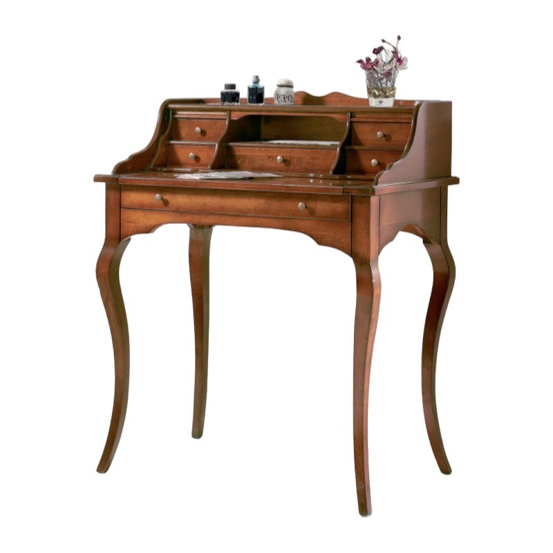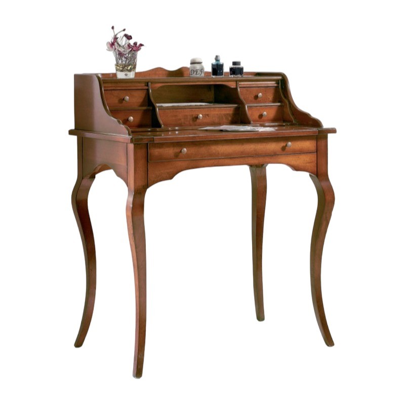 SCRIVANIA IN LEGNO ARTE POVERA 6 CASSETTI TINTA NOCE 78x49x96 (532)
