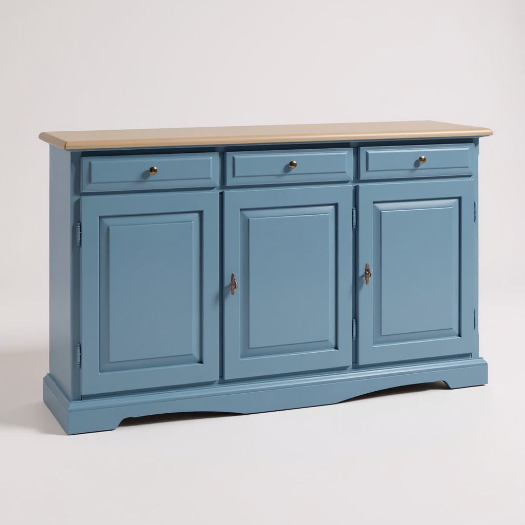 MADIA CREDENZA IN LEGNO LACCATO PENNELLATO CARTA DA ZUCCHERO L.156 P.42 H.85