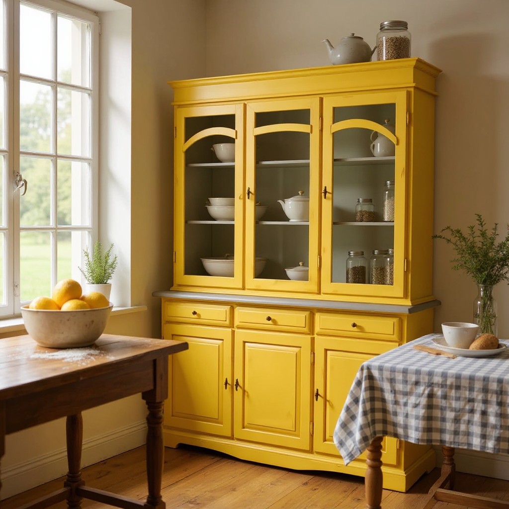 CRISTALLIERA 3 ANTE LEGNO PENNELLATO GIALLA 156X42X205