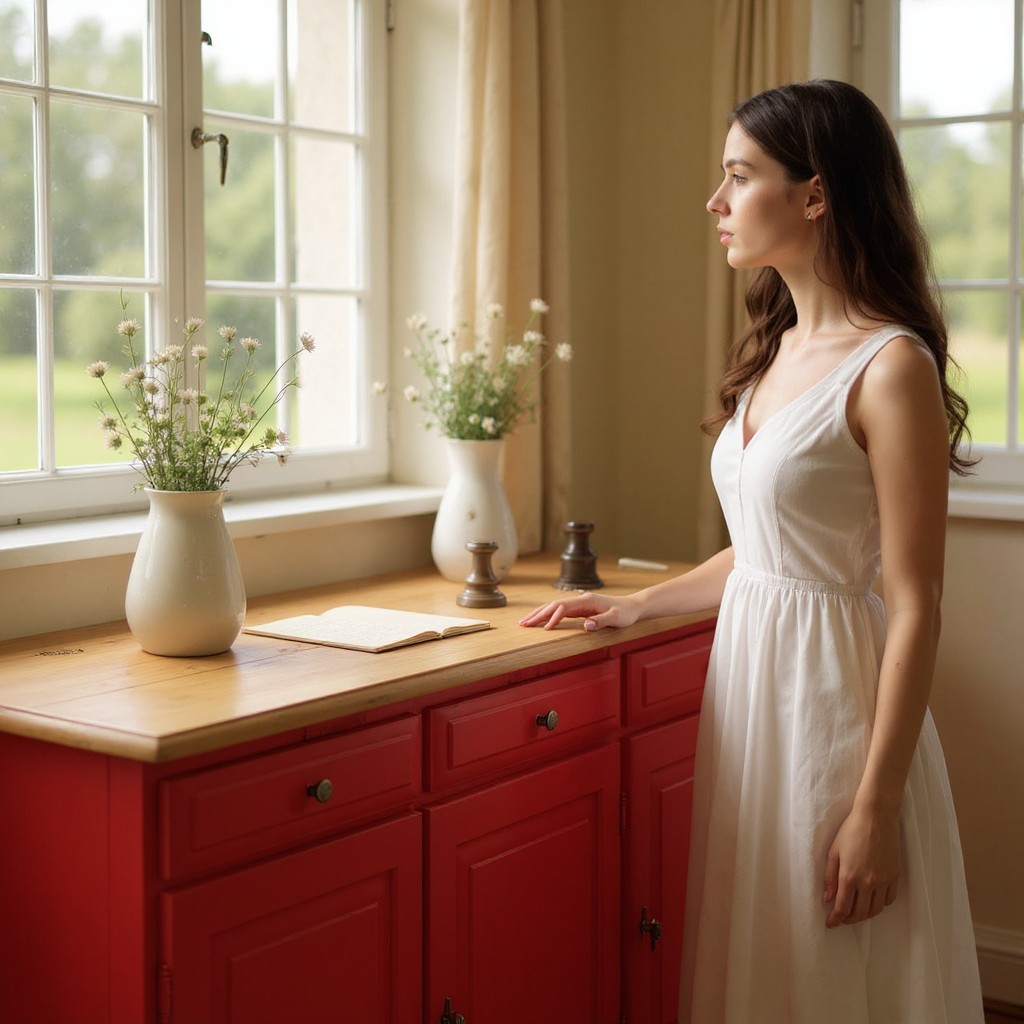 STRUTTURA DELLA CREDENZA LACCATO ROSSO CON PIANO TINTA NATURALE