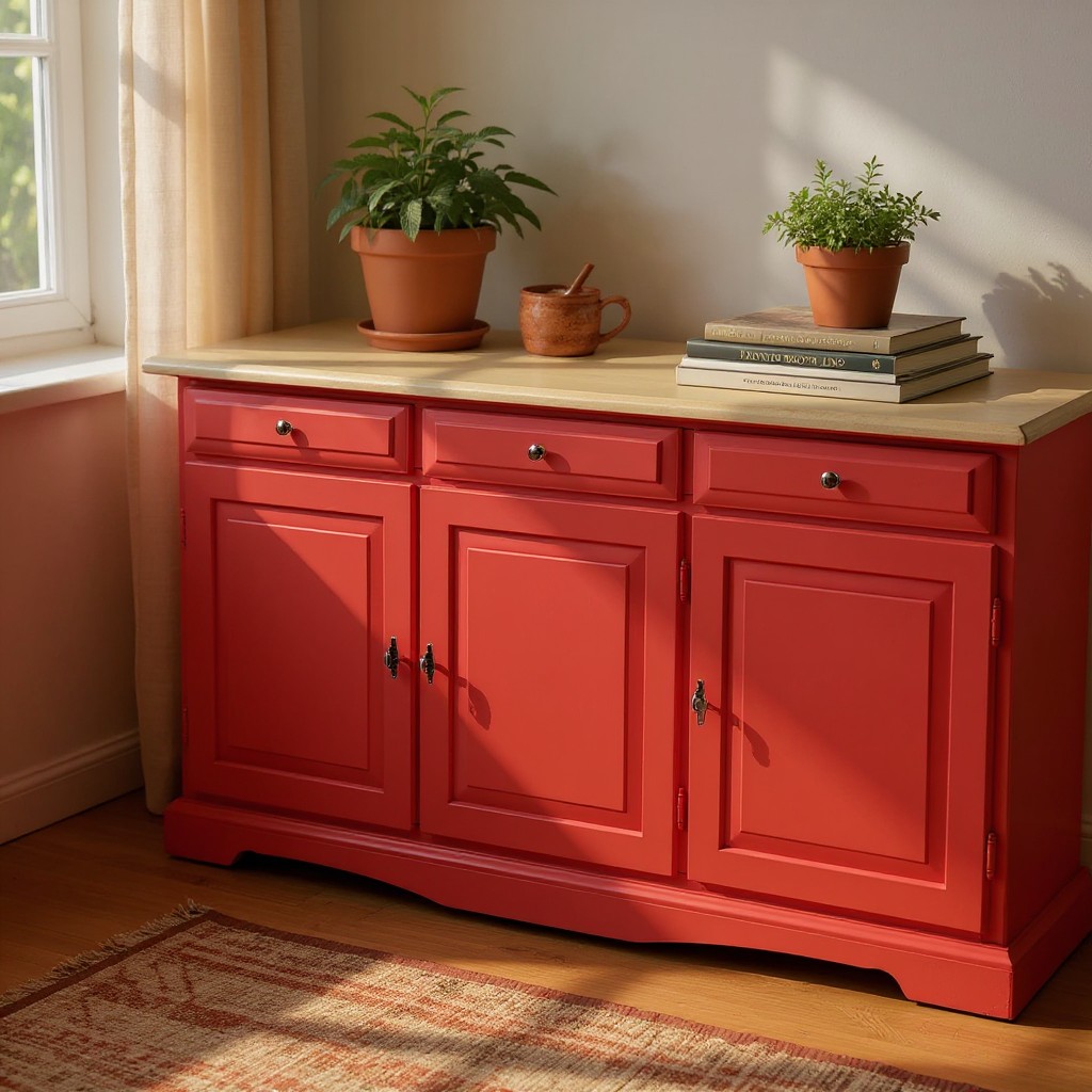 CREDENZA ARTE POVERA LACCATO ROSSO