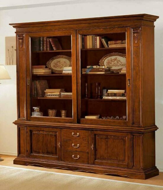 LIBRERIA ARTIGIANALE 2 PORTE SCORREVOLI TINTA NOCE+2 PORTE BATTENTI CON LAVORAZIONE A DIAMANTE TINTA NOCE