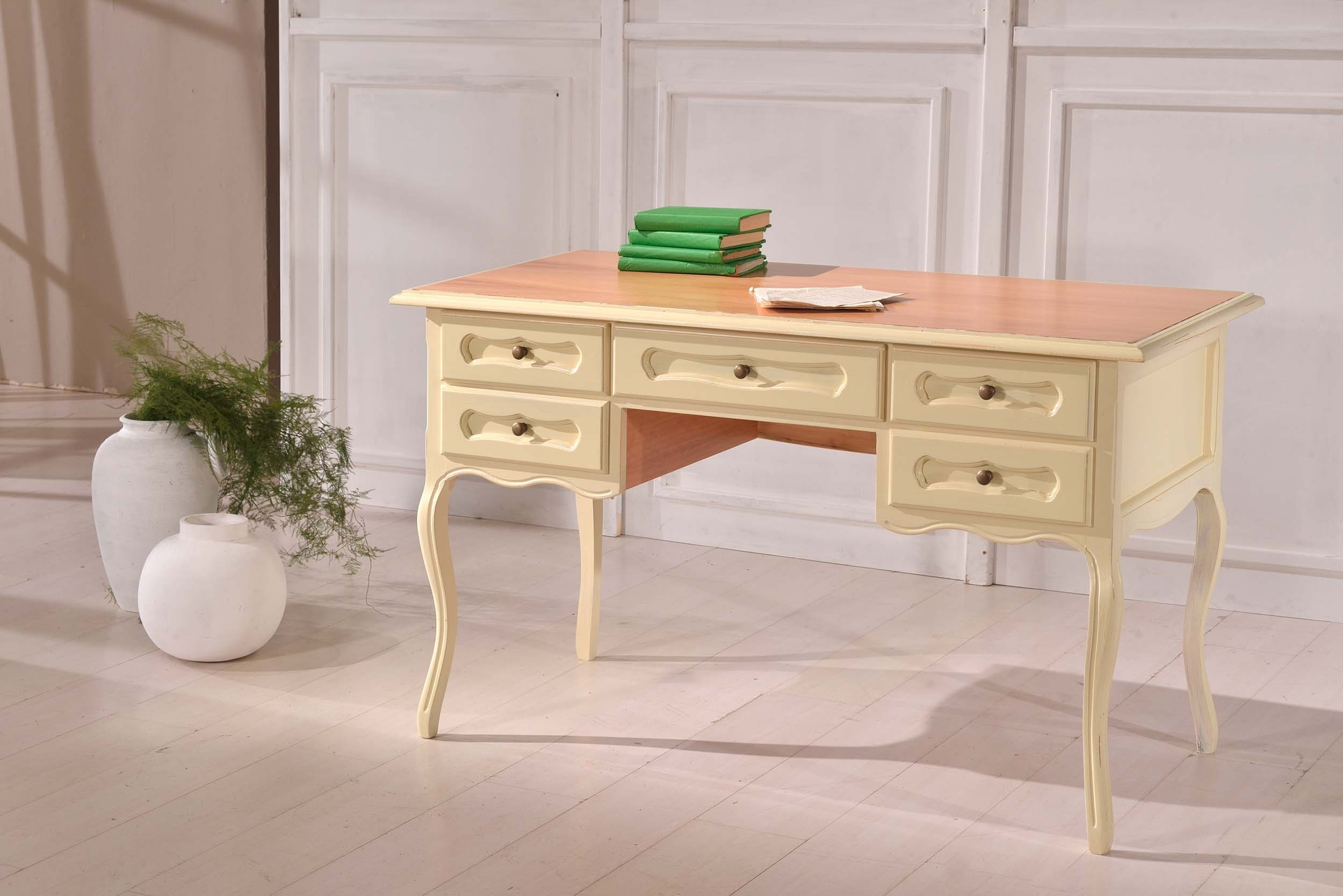 SCRITTOIO 5 CASSETTI BICOLORE LACCATO AVORIO