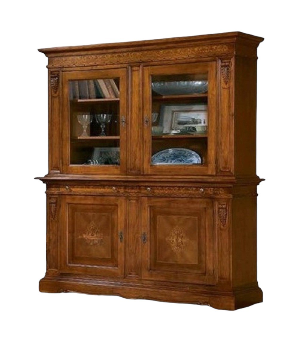 CRISTALLIERA 4 PORTE TINTA NOCE IN LEGNO INTARSI 214X55X230
