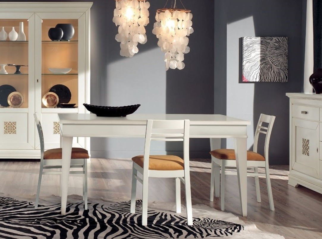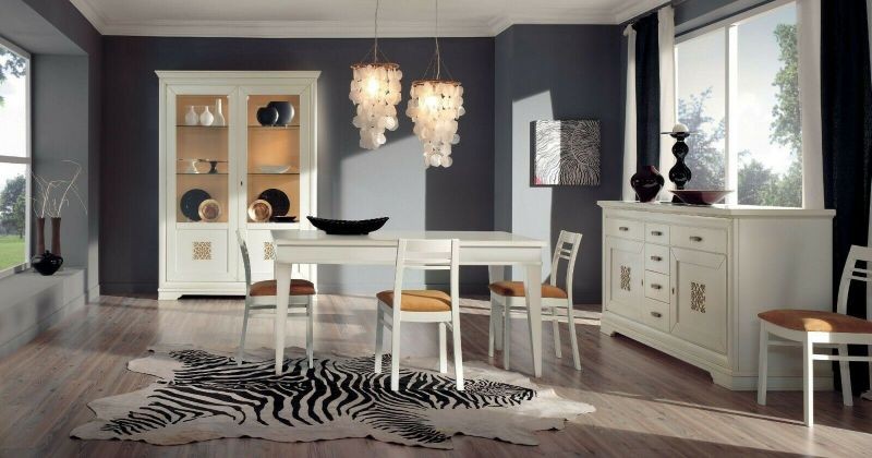 Colore sala: laccato bianco opaco con intagli