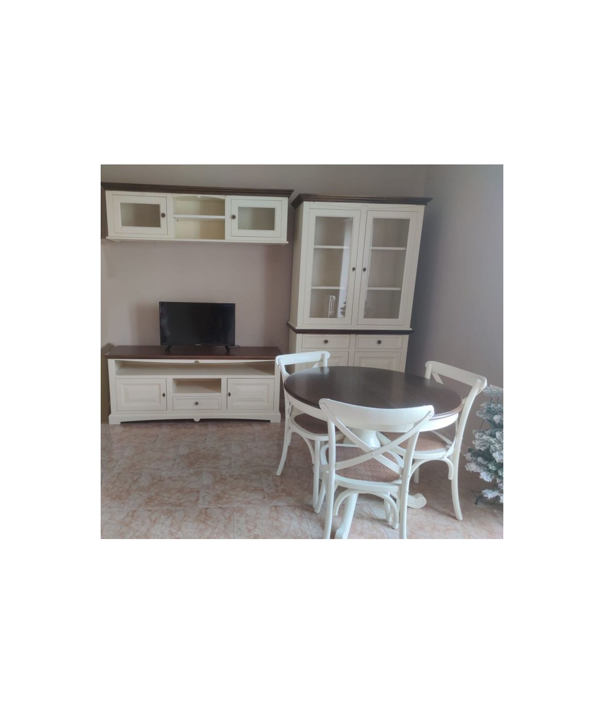 Soggiorno legno shabby chic bicolore bianco anticato noce