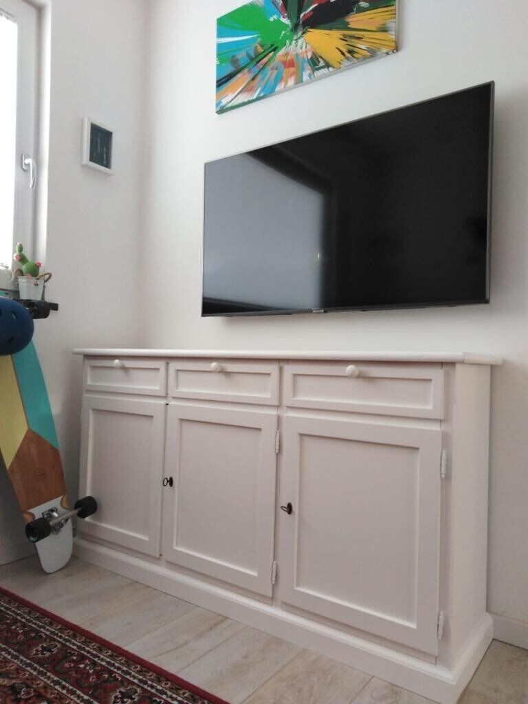 Soggiorno sala in legno shabby chic laccato bianco opaco