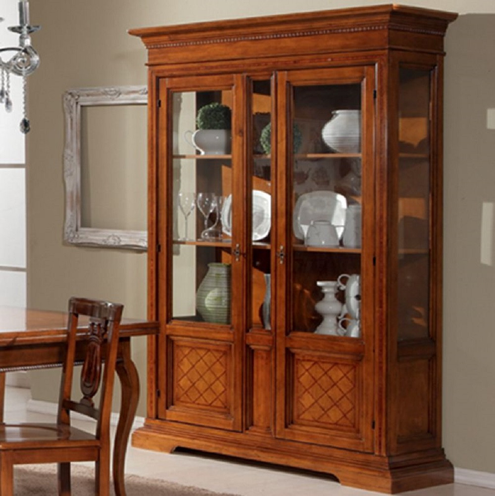 01 VETRINA 2 PORTE CON INTARSIO A ROMBI L.146 P.53 H.213