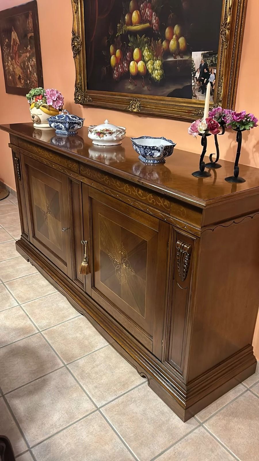 01 CREDENZA 2 PORTE 2 CASSETTI CON INTARSIO  A FIORE L.214 P.55 H.109