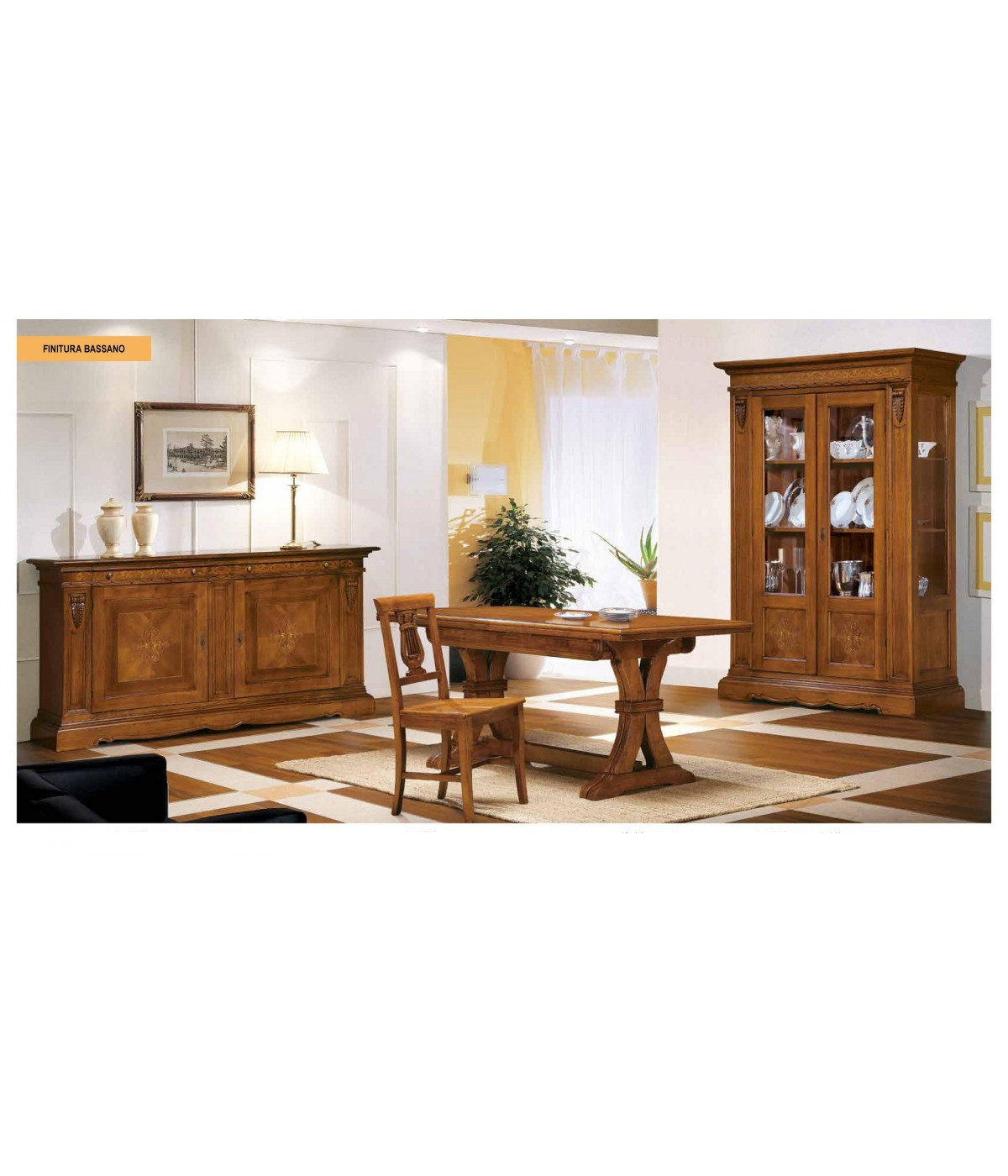 MOBILI 2G - SOGGIORNO IN LEGNO ARTE POVERA INTARSIO A FIORE IN LEGNO TINTA NOCE