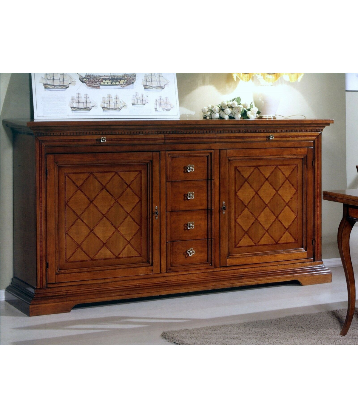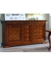 01 CREDENZA 2 PORTE 6 CASSETTI CON INTARSIO A ROMBI L.210 P.53 H.115