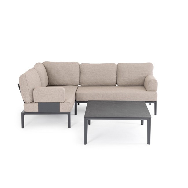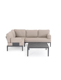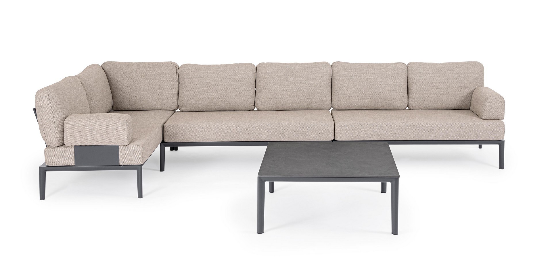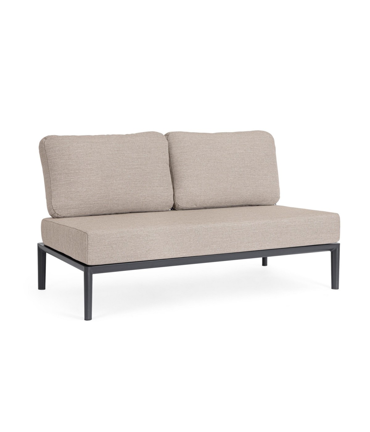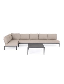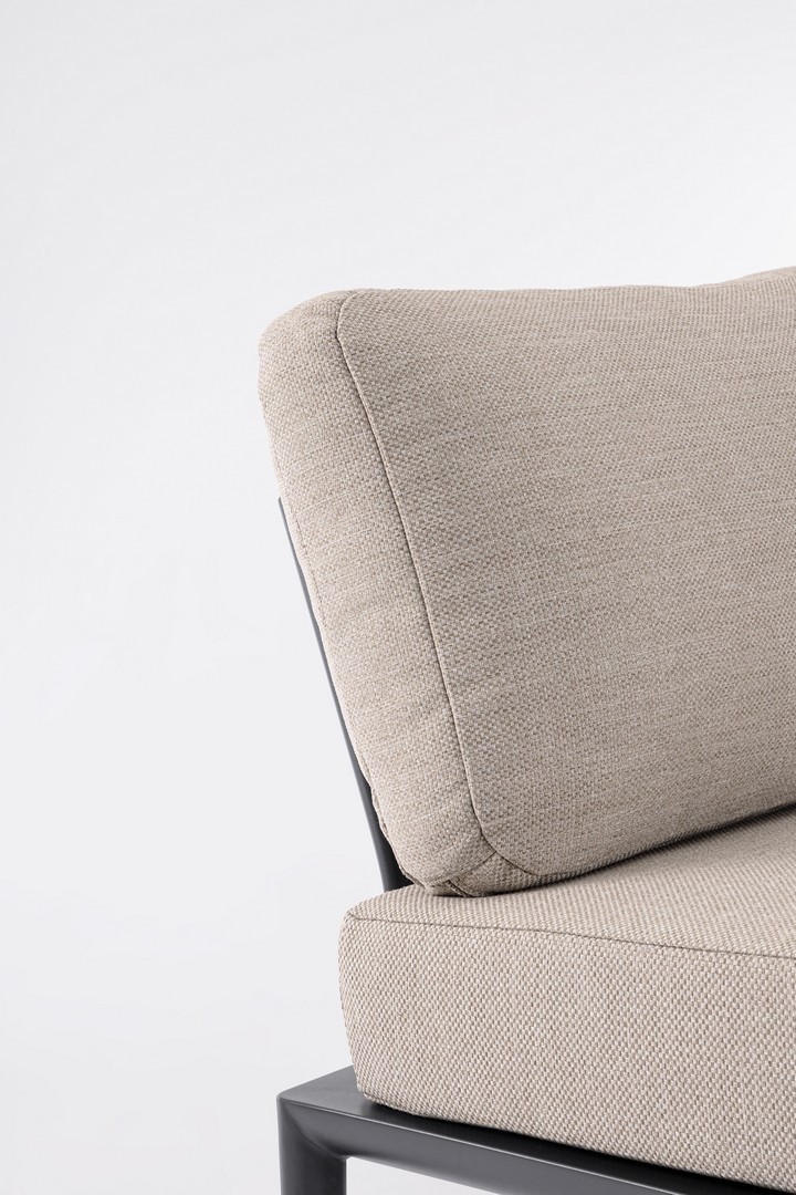 STRUTTURA IN ALLUMINIO VERNICIATA A POLVERE (POLIESTERE). CUSCINI SFODERABILI CON TESSUTO IDROREPELLENTE OLEFIN (100% POLIPROPILENE). SCHIENALI DA INSERIRE.