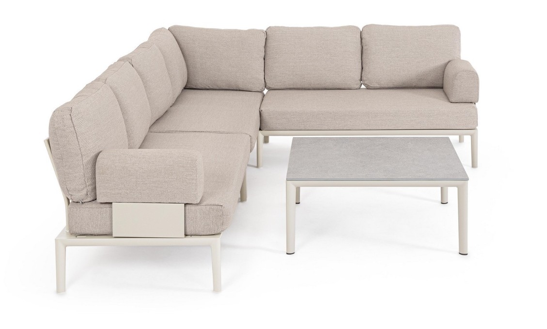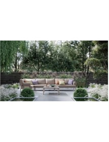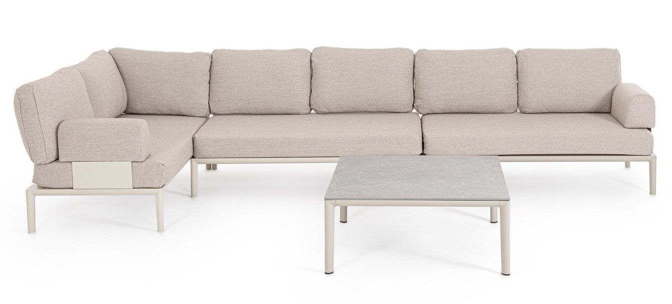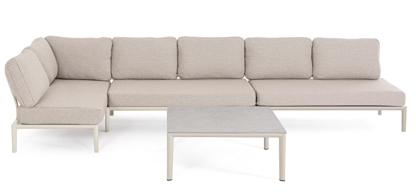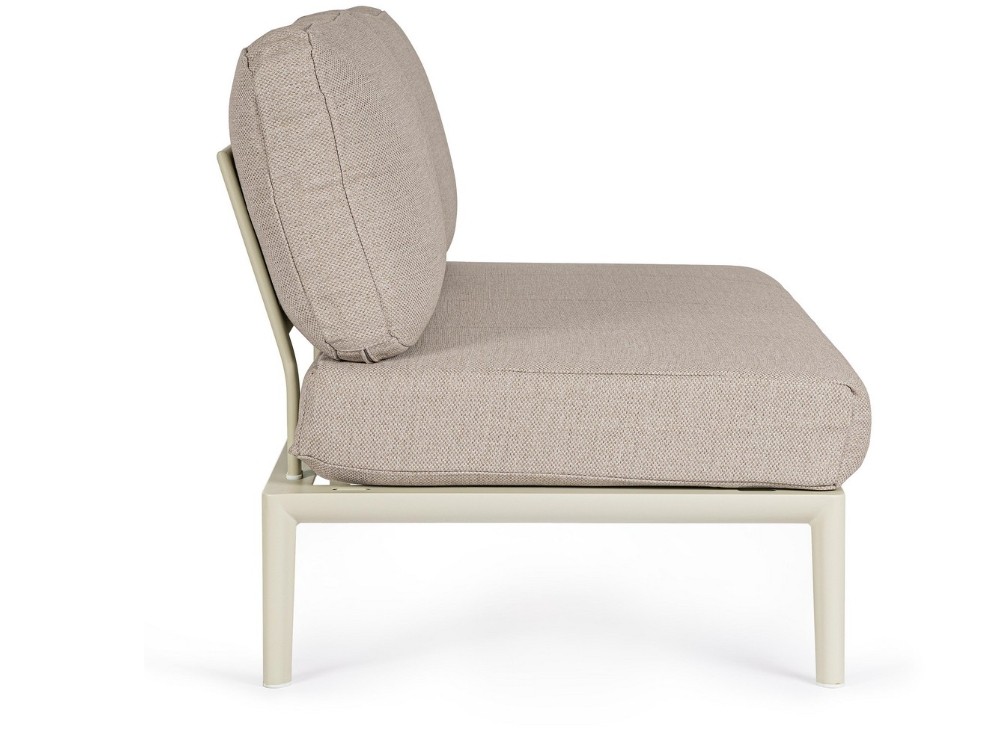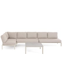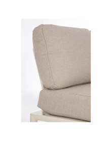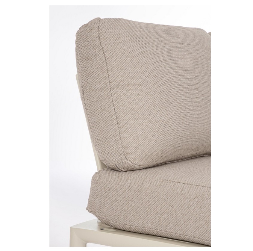 STRUTTURA IN ALLUMINIO VERNICIATA A POLVERE (POLIESTERE). CUSCINI SFODERABILI CON TESSUTO IDROREPELLENTE OLEFIN (100% POLIPROPILENE). SCHIENALI DA INSERIRE.