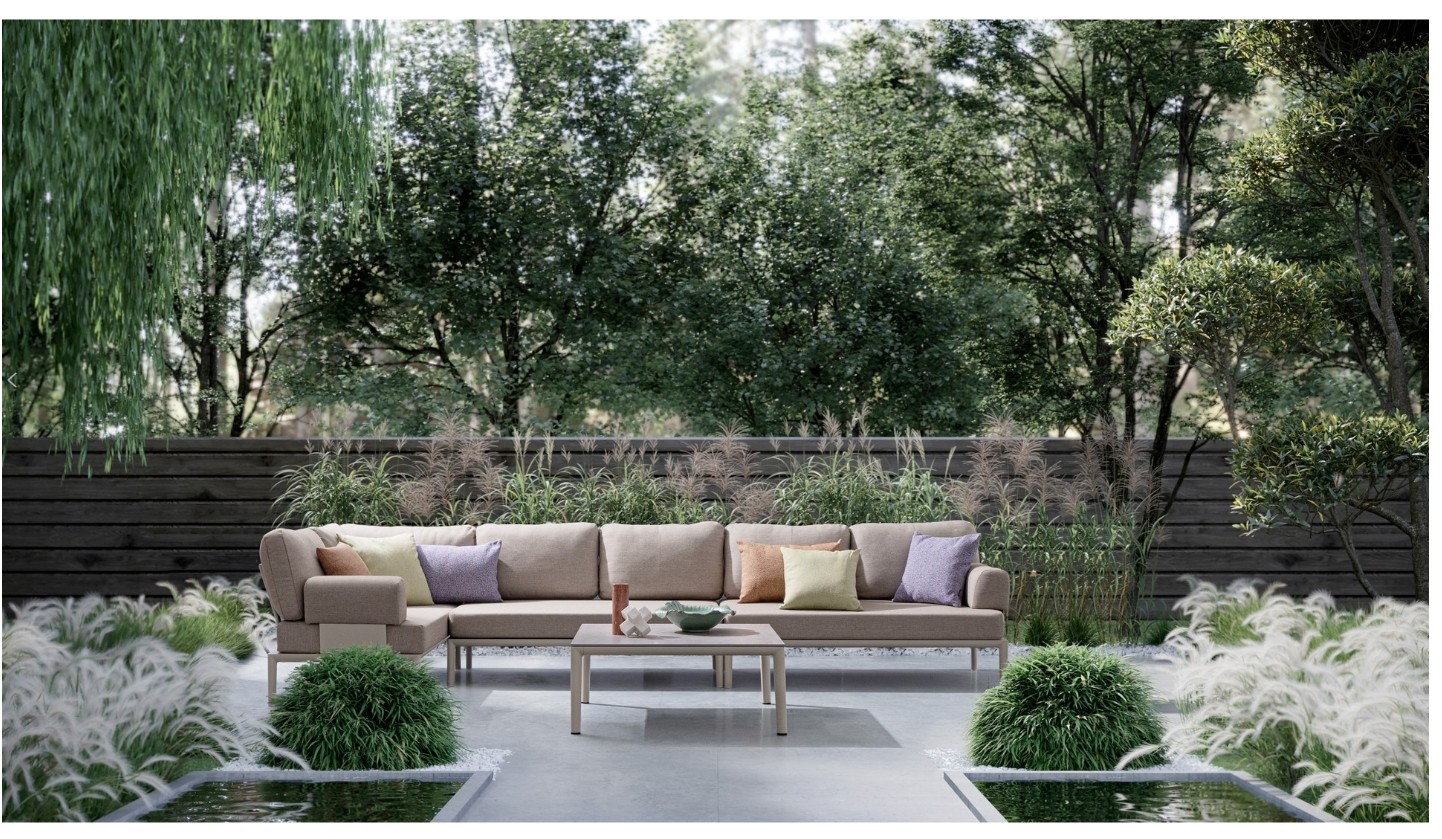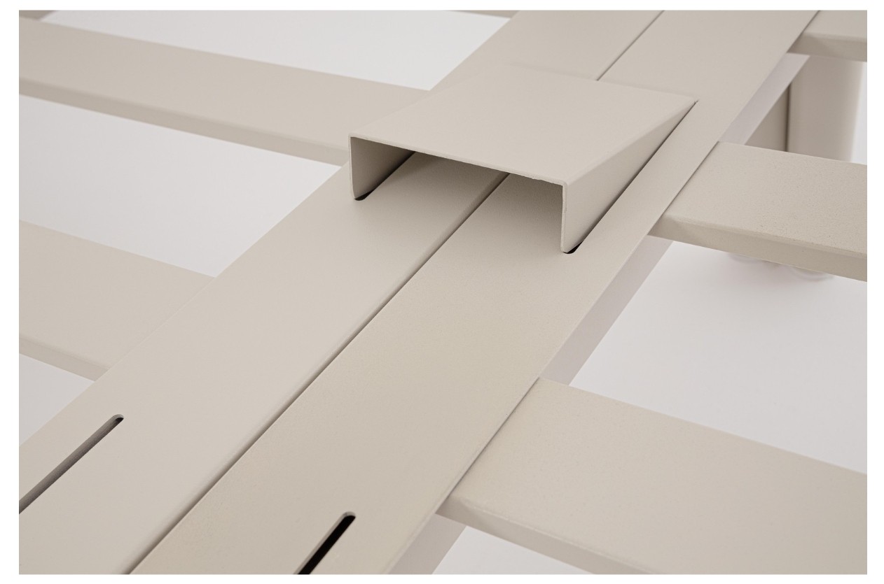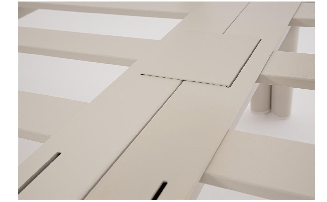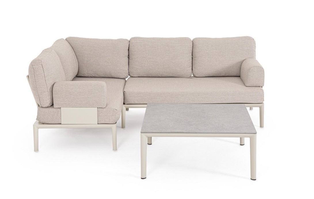 STRUTTURA IN ALLUMINIO VERNICIATA A POLVERE (POLIESTERE). CUSCINI SFODERABILI CON TESSUTO IDROREPELLENTE OLEFIN (100% POLIPROPILENE). SCHIENALI DA INSERIRE.