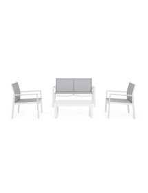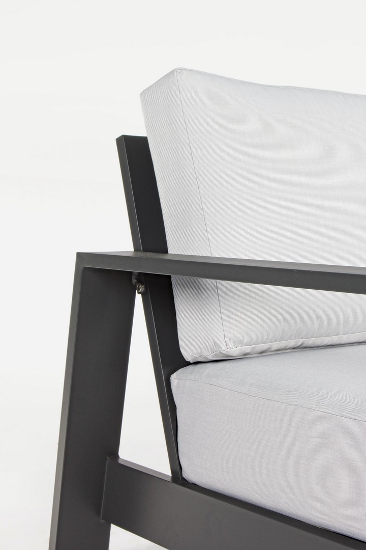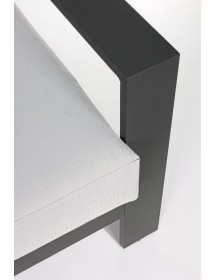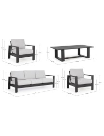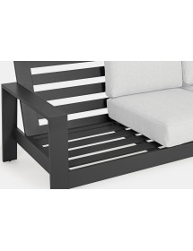 ALLUMINIO VERNICIATO A POLVERE (POLIESTERE). CUSCINI SEDUTA E SCHIENALE SFODERABILI CON TESSUTO IDROREPELLENTE OLEFIN (100% POLIPROPILENE). PIEDINI REGOLABILI. VITERIA IN ACCIAIO INOSSIDABILE. DA ASSEMBLARE.