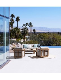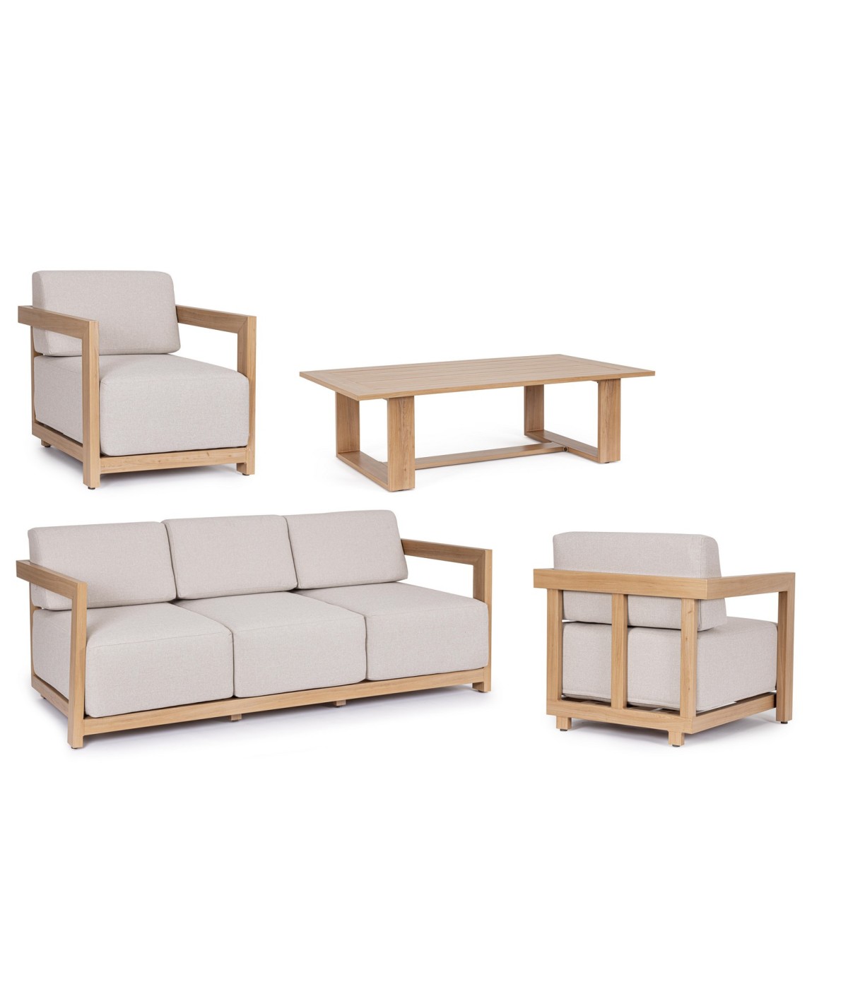 ALLUMINIO VERNICIATO A POLVERE (POLIESTERE) EFFETTO LEGNO. CUSCINI SFODERABILI CON TESSUTO IDROREPELLENTE SPUNPOLY (100% POLIESTERE) ED IMBOTTITURA PER ESTERNO FAST DRY FOAM. PIEDINI REGOLABILI. VITERIA IN ACCIAIO INOSSIDABILE. TAVOLINO DA ASSEMBLARE.