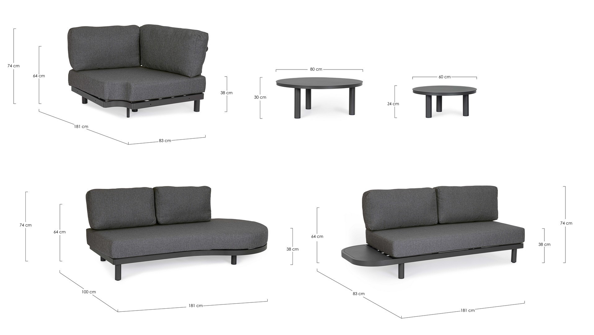 - B 181a - 83b - 74h - 38h1 - 64h3 / B 181a - 100b - 74h - 38h1 - 64h3 / B 100a - 100b - 74h - 38h1 - 64h3 / C Ø60a - 24h / C Ø80a - 30h