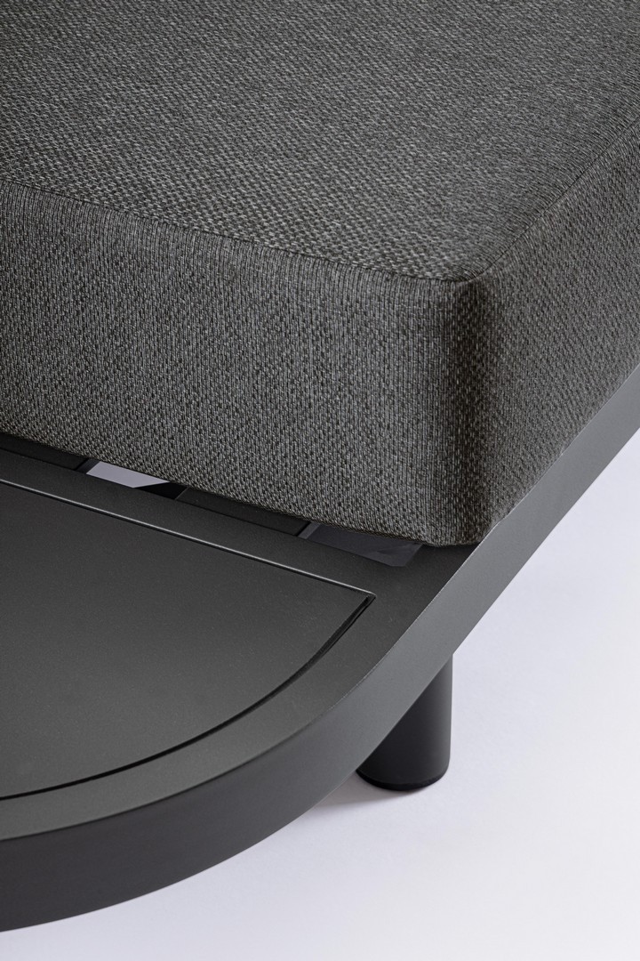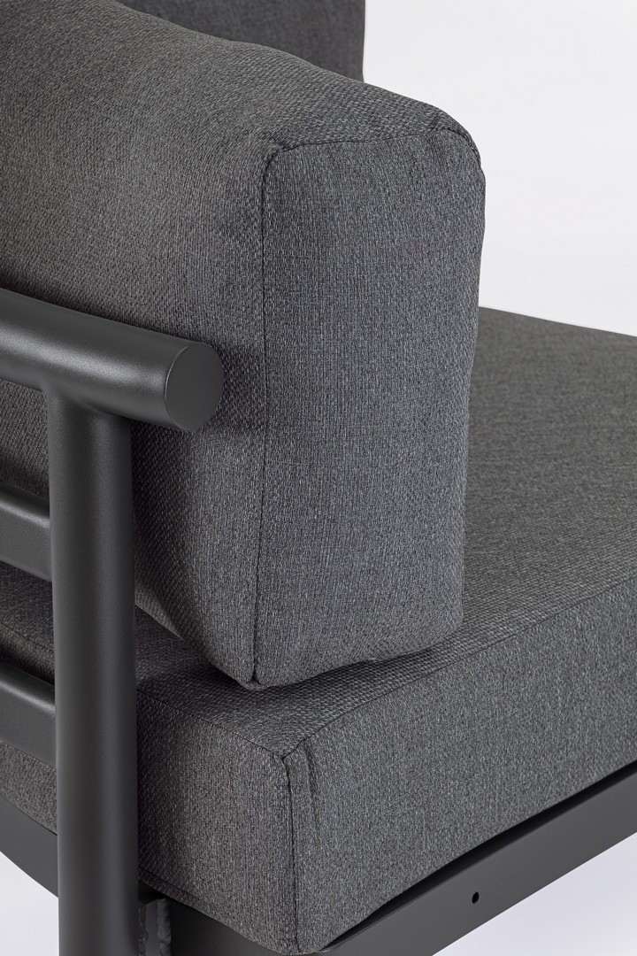 STRUTTURA IN ALLUMINIO VERNICIATO A POLVERE (POLIESTERE). CUSCINI SEDUTA E SCHIENALE SFODERABILI IN TESSUTO IDROREPELLENTE OLEFIN (100% POLIPROPILENE). PIEDINI REGOLABILI. GAMBE ANGOLARE E TAVOLINO (VITERIA IN ACCIAIO INOSSIDABILE) DA ASSEMBLARE.