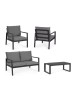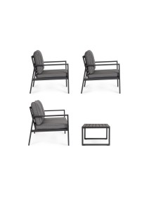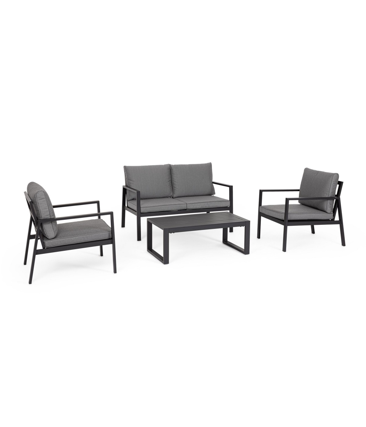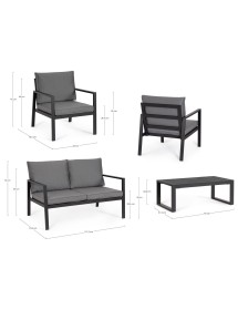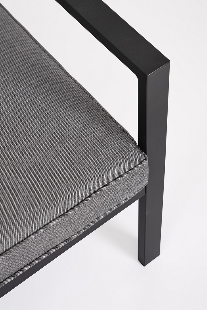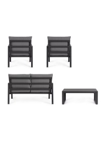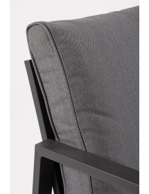 STRUTTURA IN ALLUMINIO, VERNICIATO A POLVERE (POLIESTERE). SEDUTA IN TEXTILENE 2X1. CUSCINI SFODERABILI CON TESSUTO IDROREPELLENTE SPUN POLY (POLIESTERE).VITERIA IN ACCIAIO INOSSIDABILE. DA ASSEMBLARE.