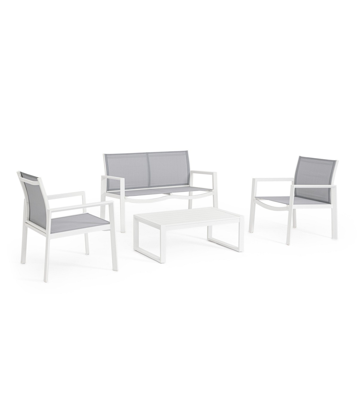 ALLUMINIO VERNICIATO A POLVERE (POLIESTERE). SEDUTA E SCHIENALE IN TEXTILENE 2X1. VITERIA IN ACCIAIO INOSSIDABILE. DA ASSEMBLARE.