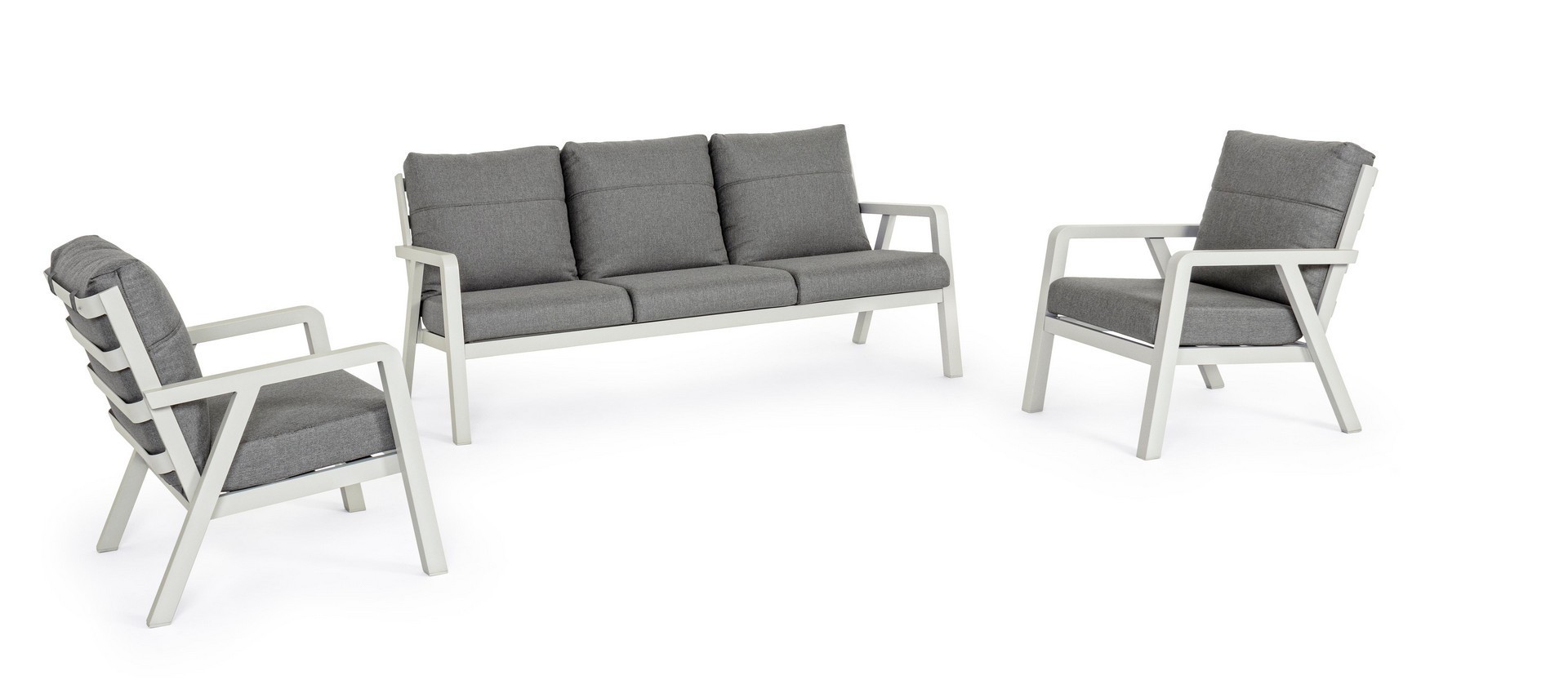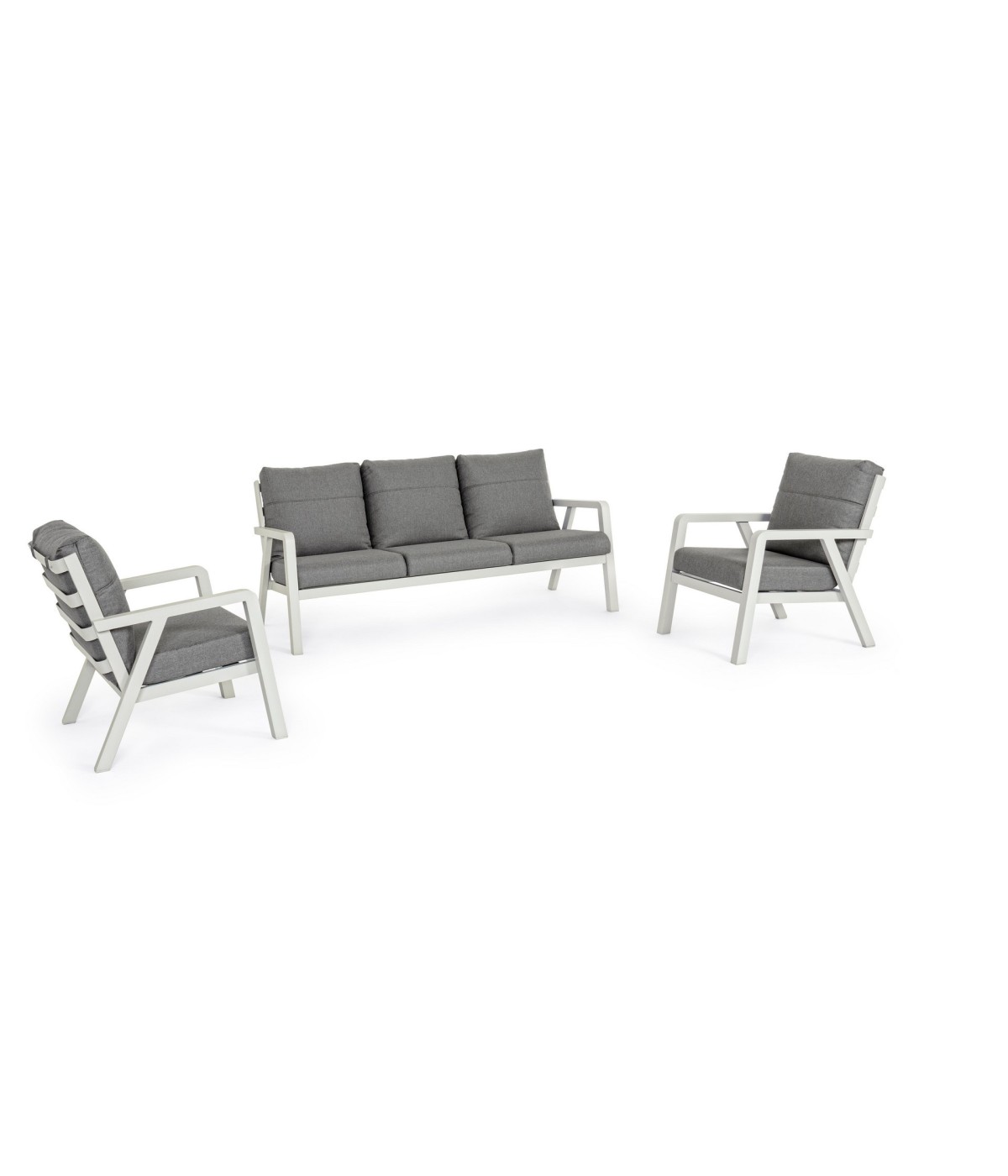STRUTTURA IN ALLUMINIO VERNICIATA A POLVERE (POLIESTERE). CUSCINI SFODERABILI CON TESSUTO OLEFIN (100% POLIPROPILENE). VITERIA IN ACCIAIO INOSSIDABILE. DA ASSEMBLARE.